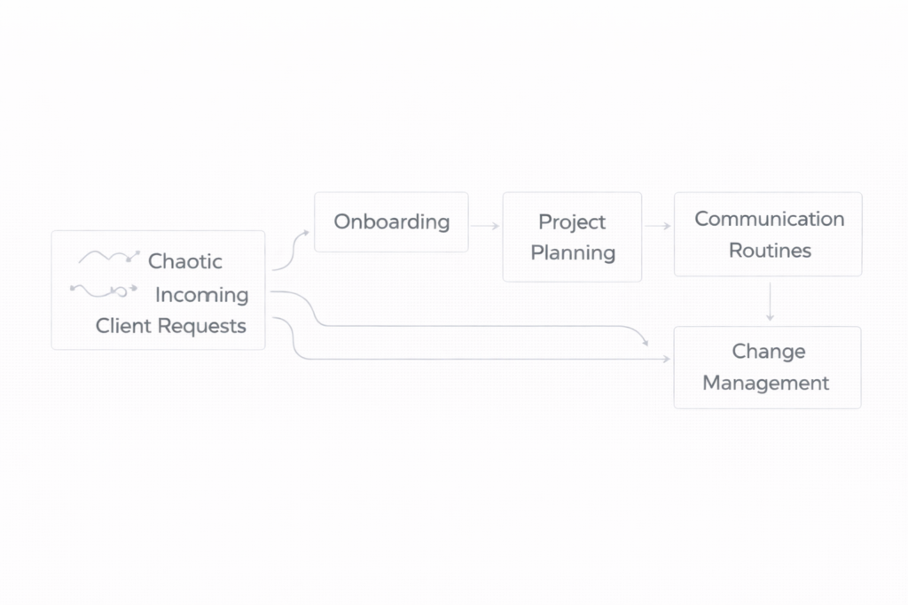Reducing client chaos requires structured operational processes that govern how consulting work is organized and communicated.